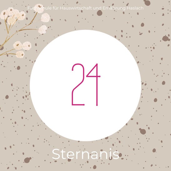 Sternanis ist eine aromatische Frucht, die in der Küche wegen ihres markanten Anisgeschmacks verwendet wird. Die sternförmigen Früchte stammen vom Sternanisbaum und werden in vielen asiatischen Gerichten eingesetzt. Sie verleihen den Gerichten ein charakteristisches Aroma. Der Geschmack ist süßlich und würzig, deshalb wird Sternanis auch für Gewürzmischungen verwendet. Er kann ganz mitgekocht und dann entfernt oder frisch gemörsert ins Gericht gegeben werden.