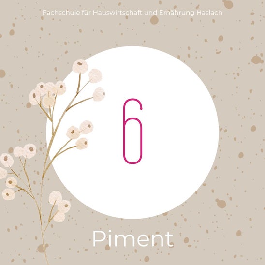 Piment oder Nelkenpfeffer hat eine dezente Säure, ist angenehm scharf und zählt zu den wärmenden Gewürzen. Kein Wunder, dass dabei sofort an Weihnachten gedacht wird, schließlich ist Piment ein fester Bestandteil des Lebkuchengewürzes. Das Gewürz am besten kurz anrösten und dann mörsern, bevor damit gewürzt wird.
